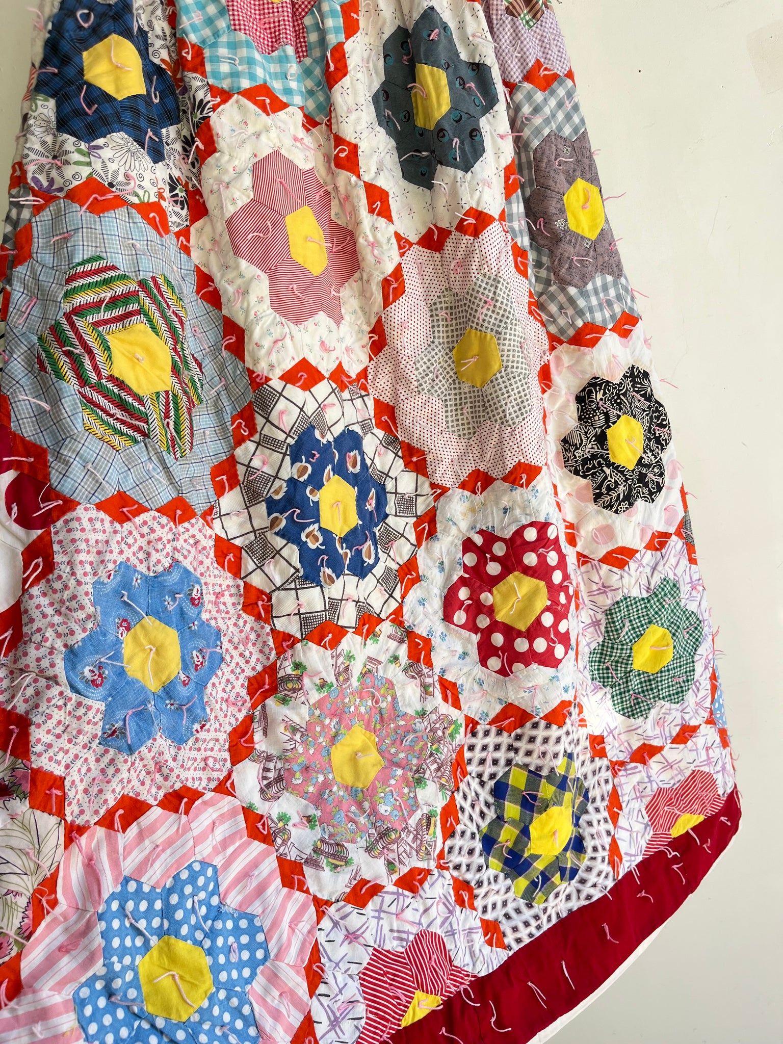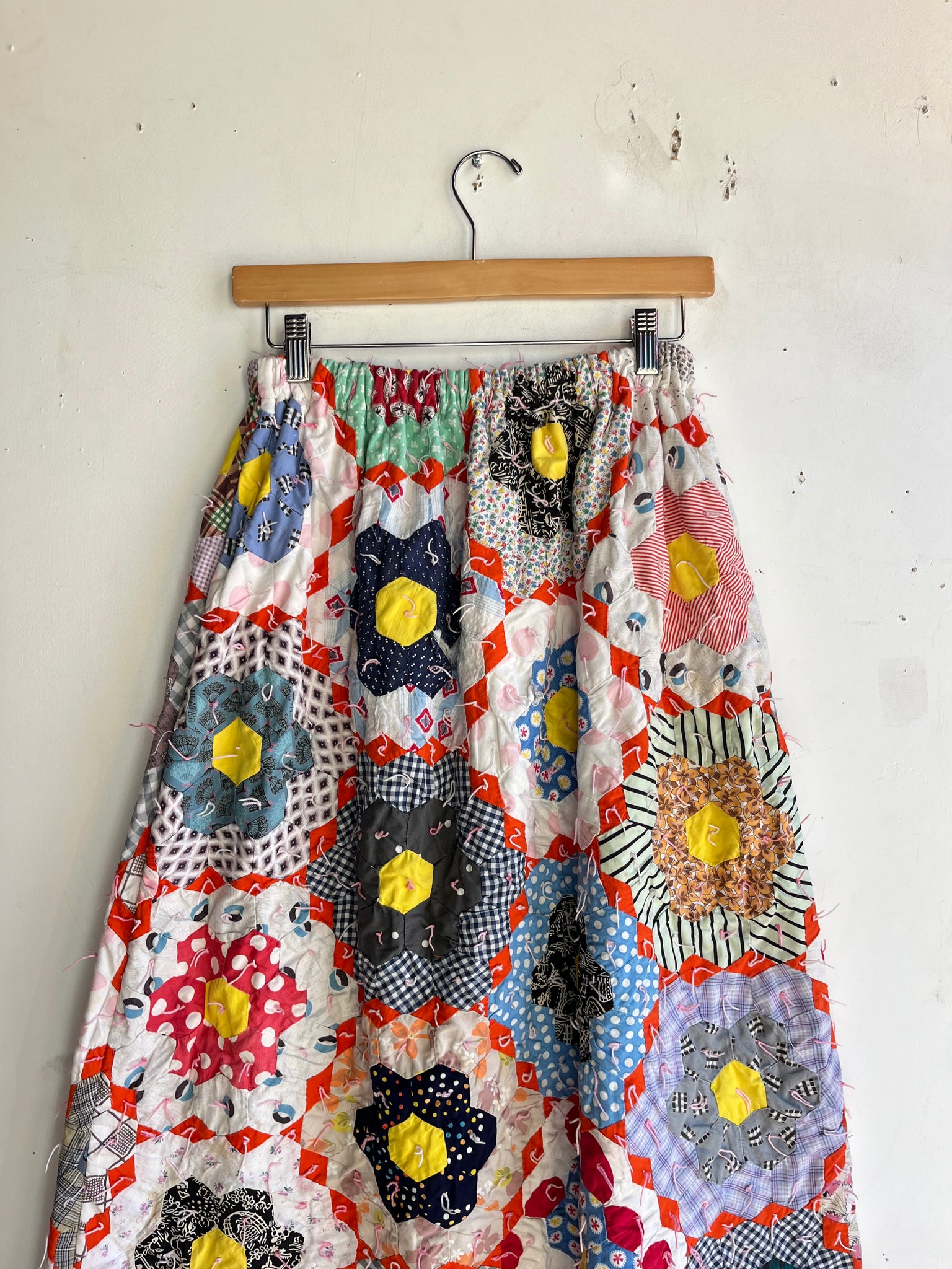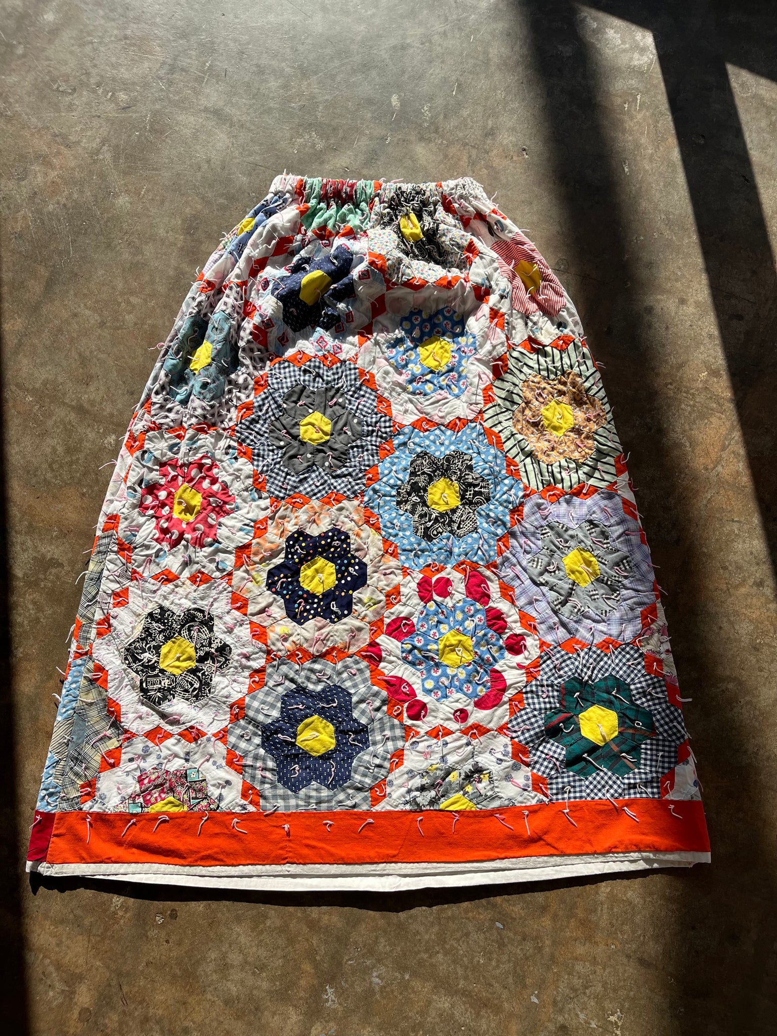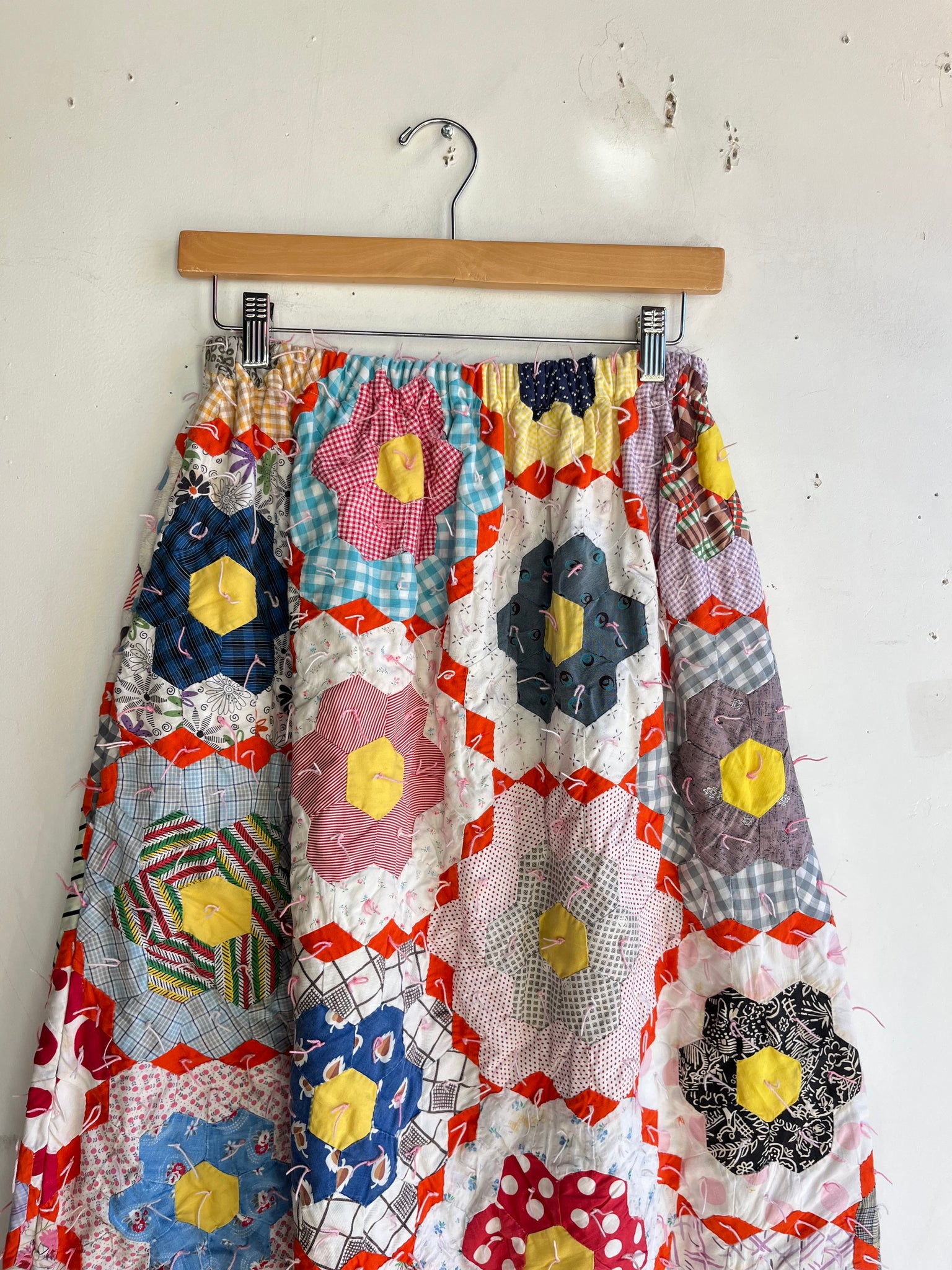Handmade Quilt Skirt-Rare 1950s Grandmother's Flower Garden
