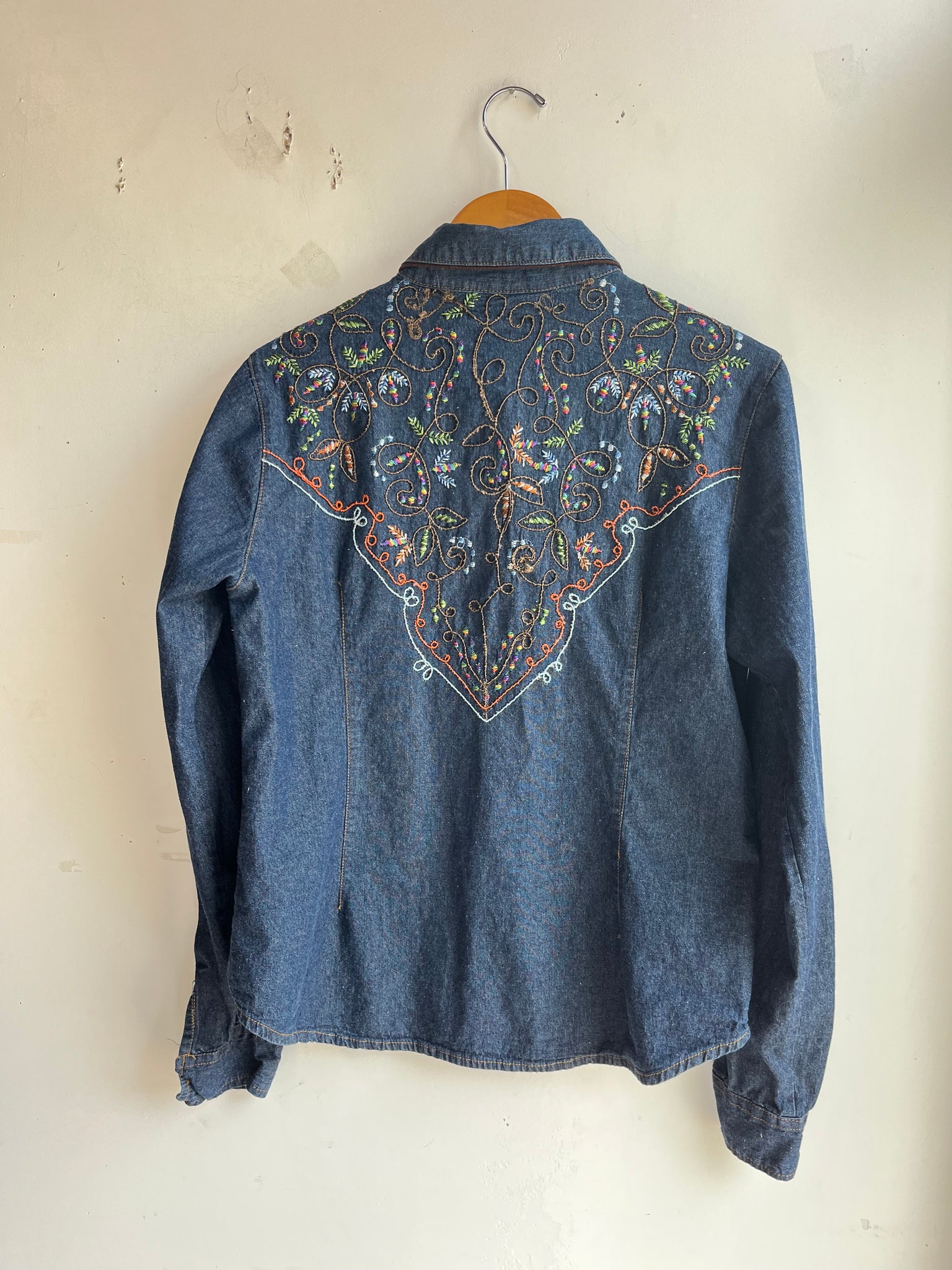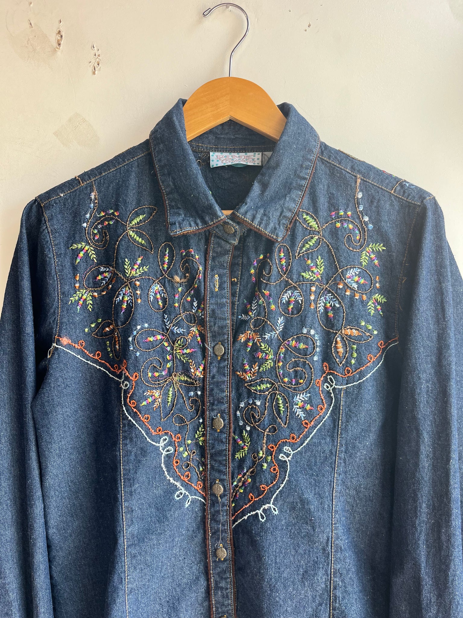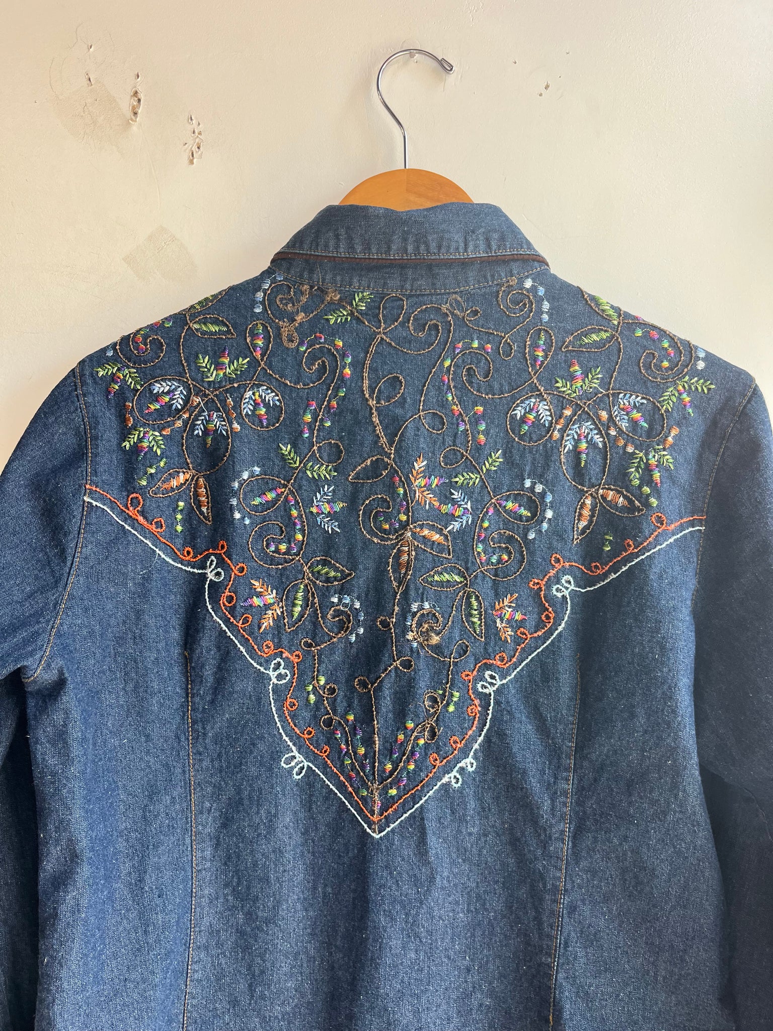Color Scheme: Blue with rainbow embroidery, I believe these embroidered details were hand done by the previous owner and not the brand