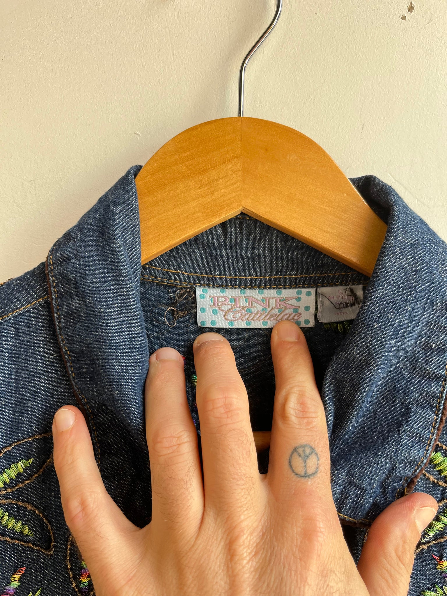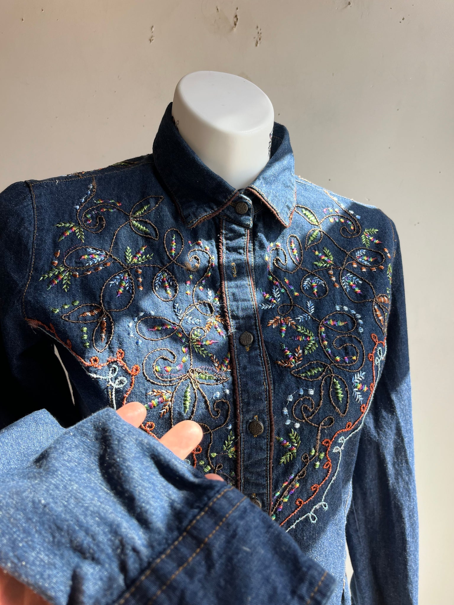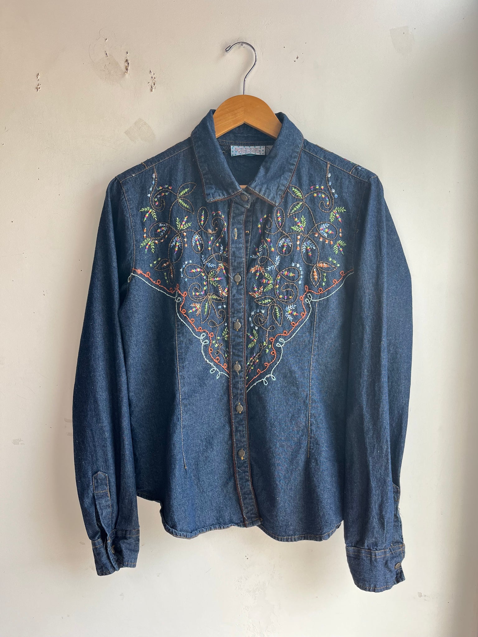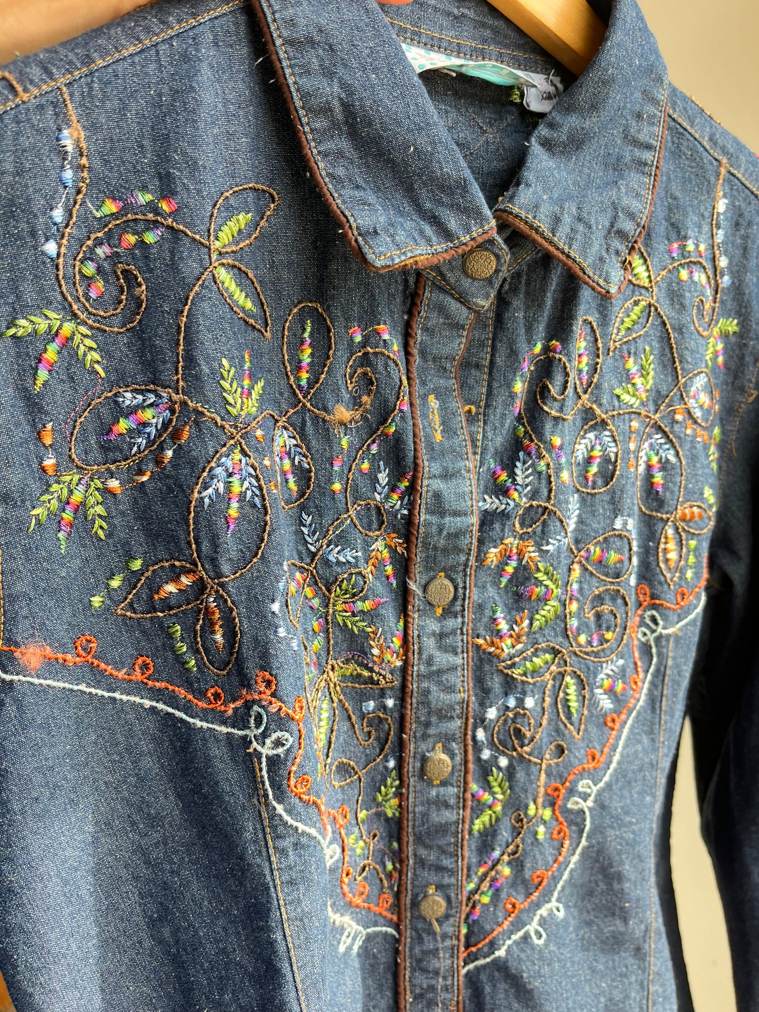 Color Scheme: Blue with rainbow embroidery, I believe these embroidered details were hand done by the previous owner and not the brand
