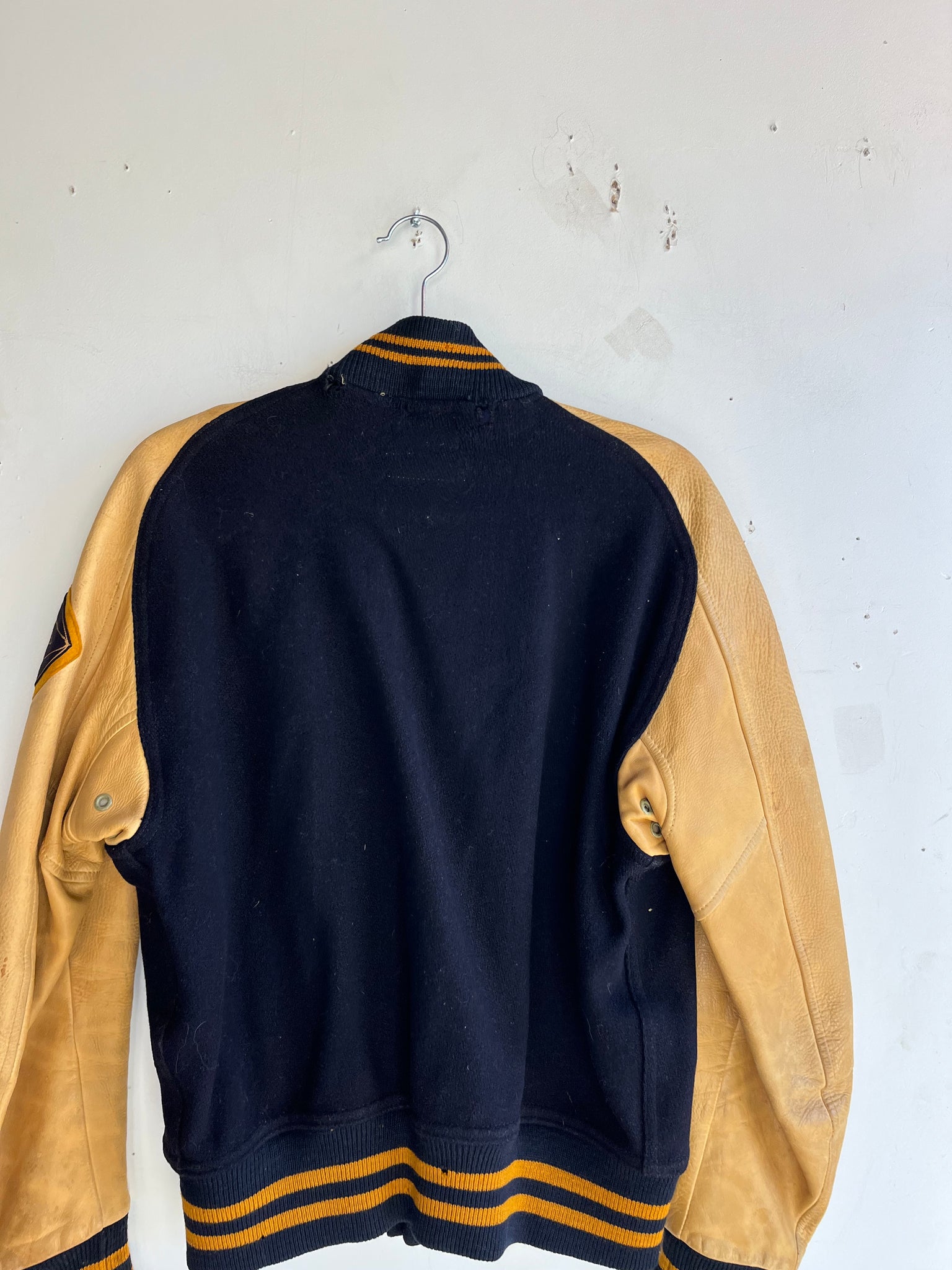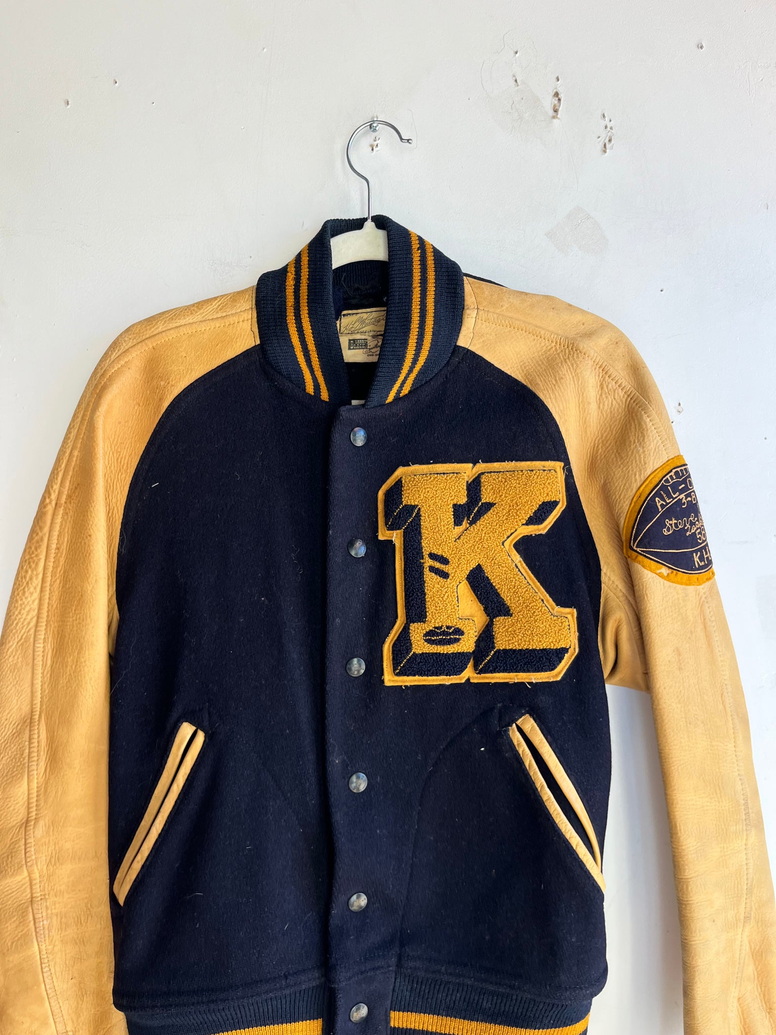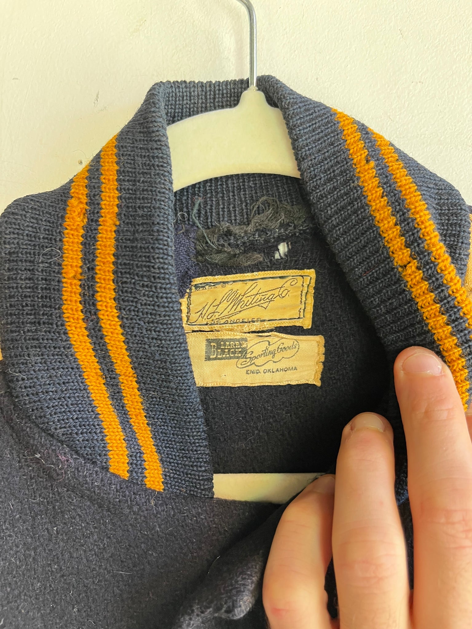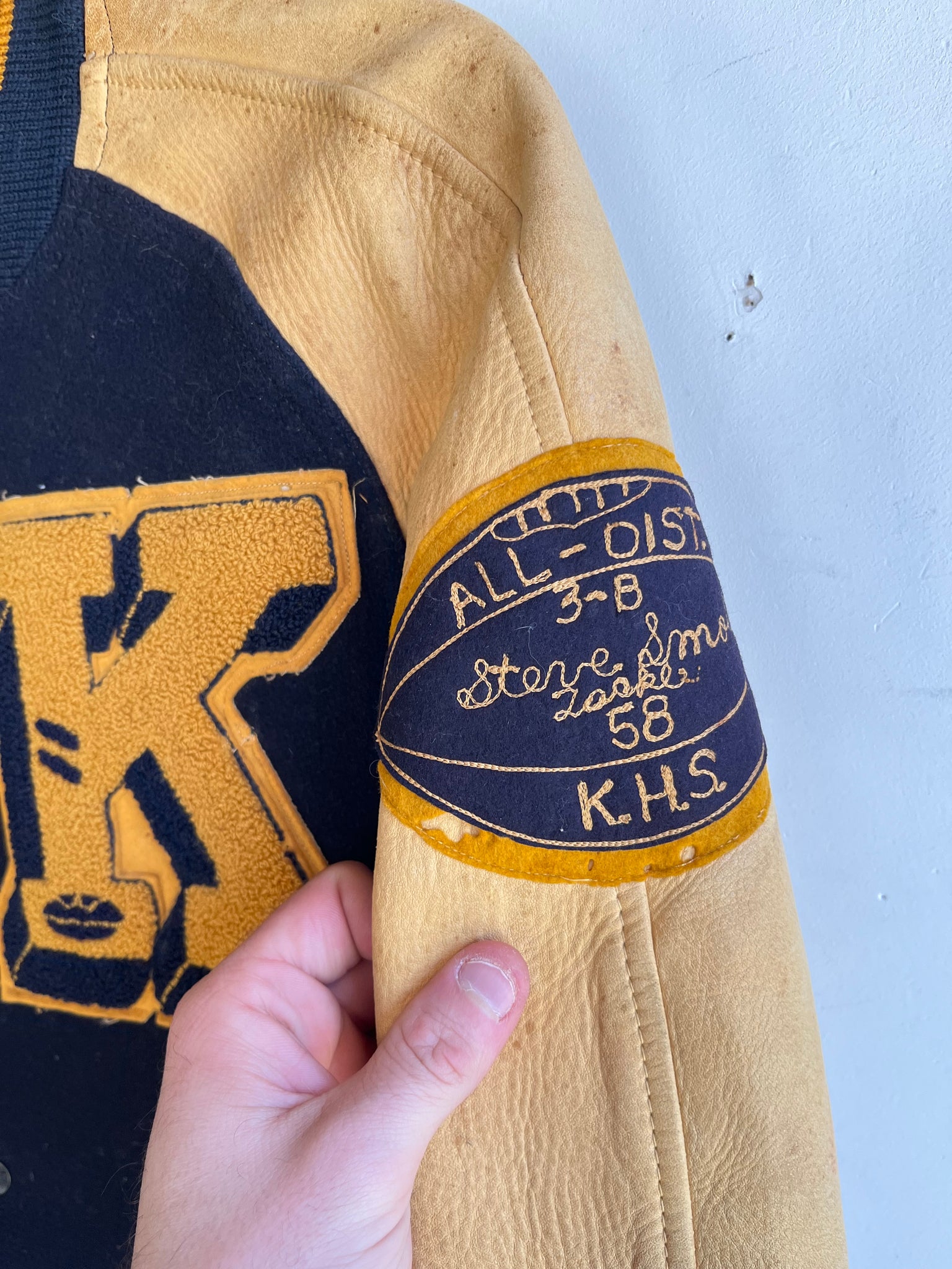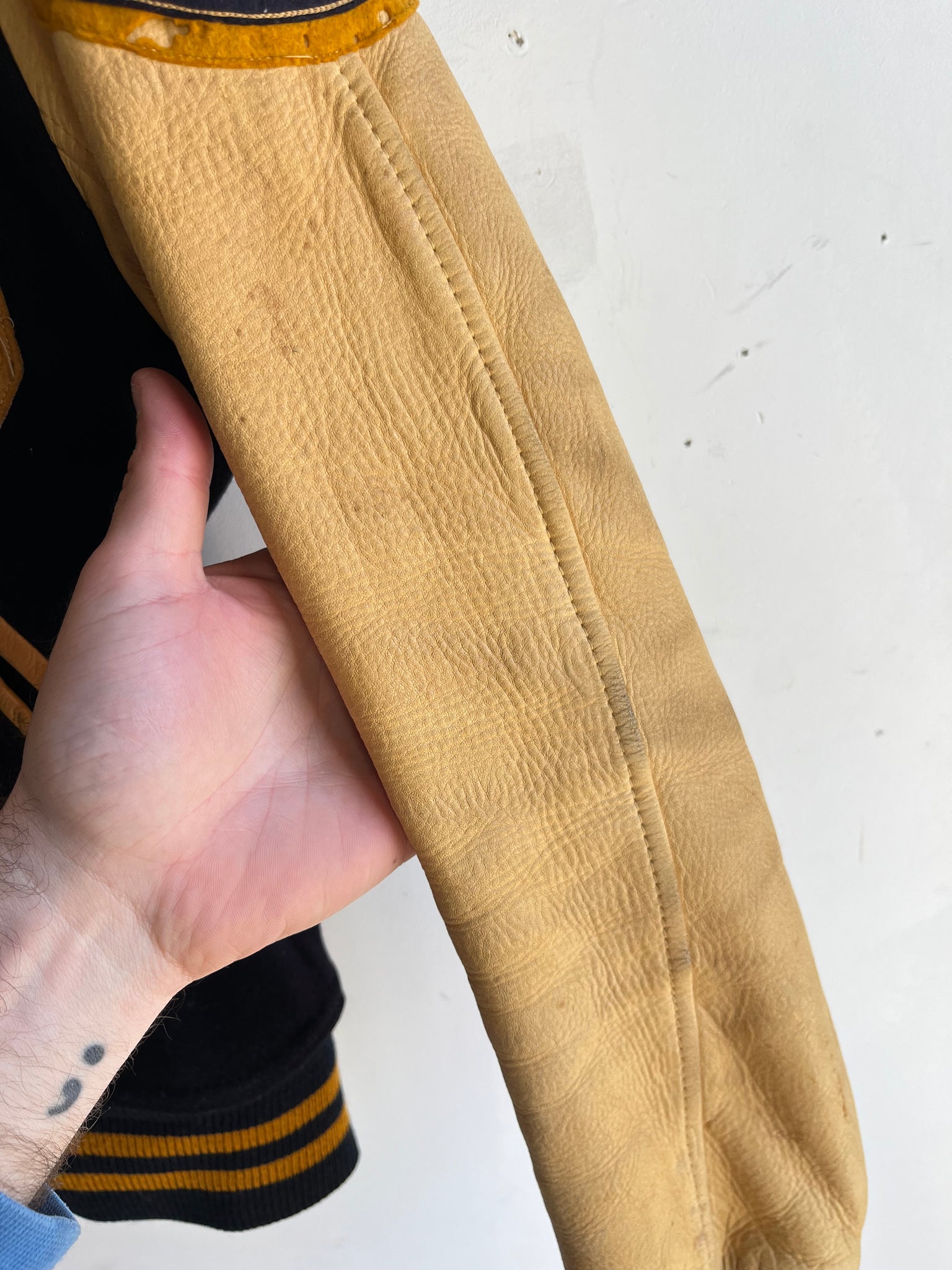 1950s Wool and Buckskin Letterman Jacket with Chain Stitched Patch