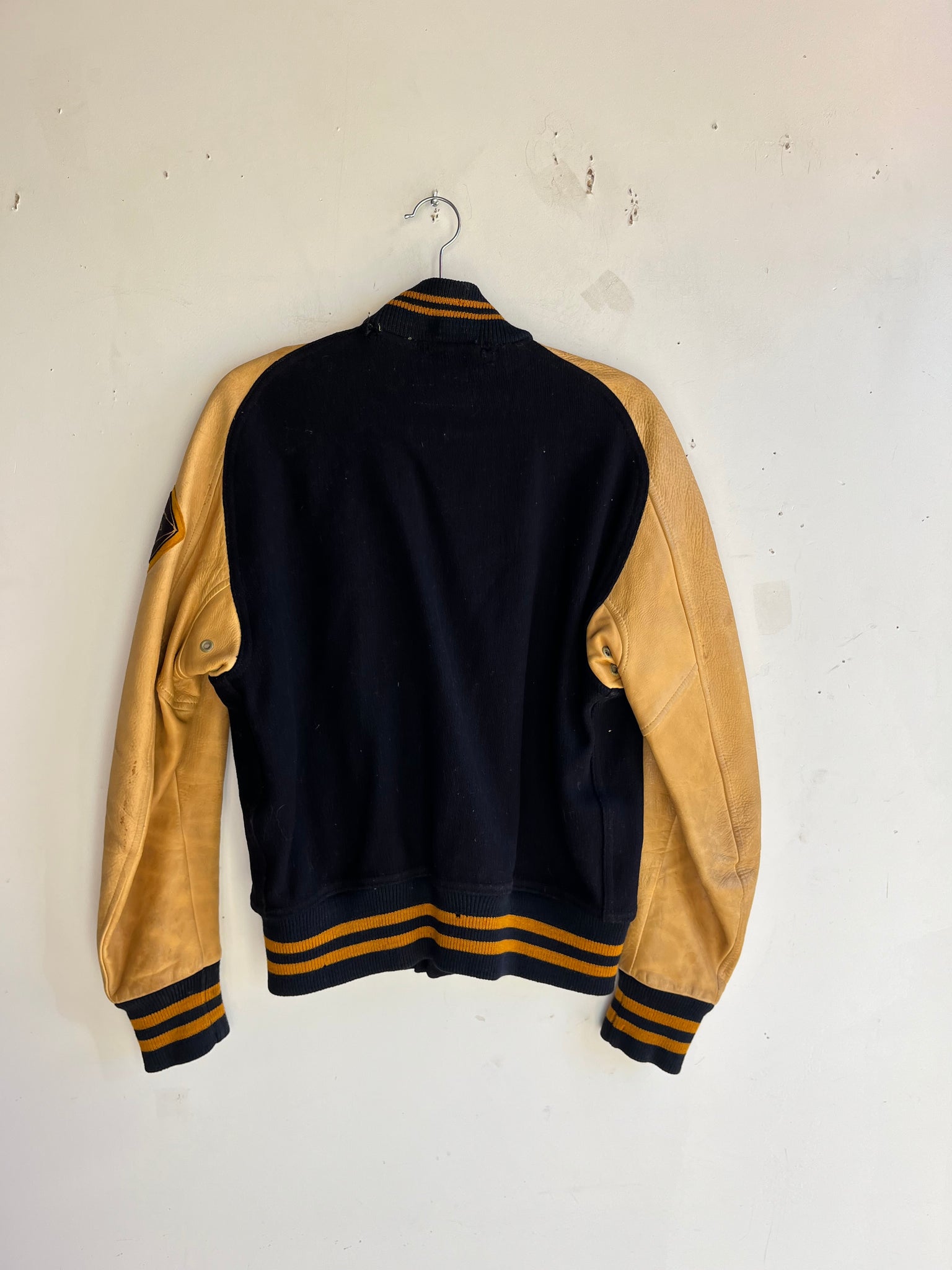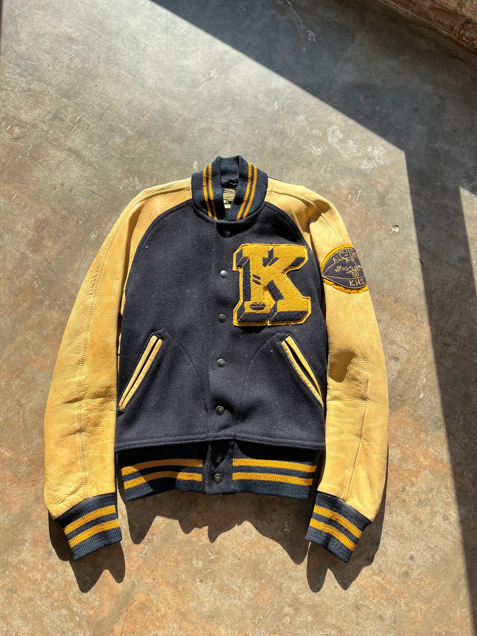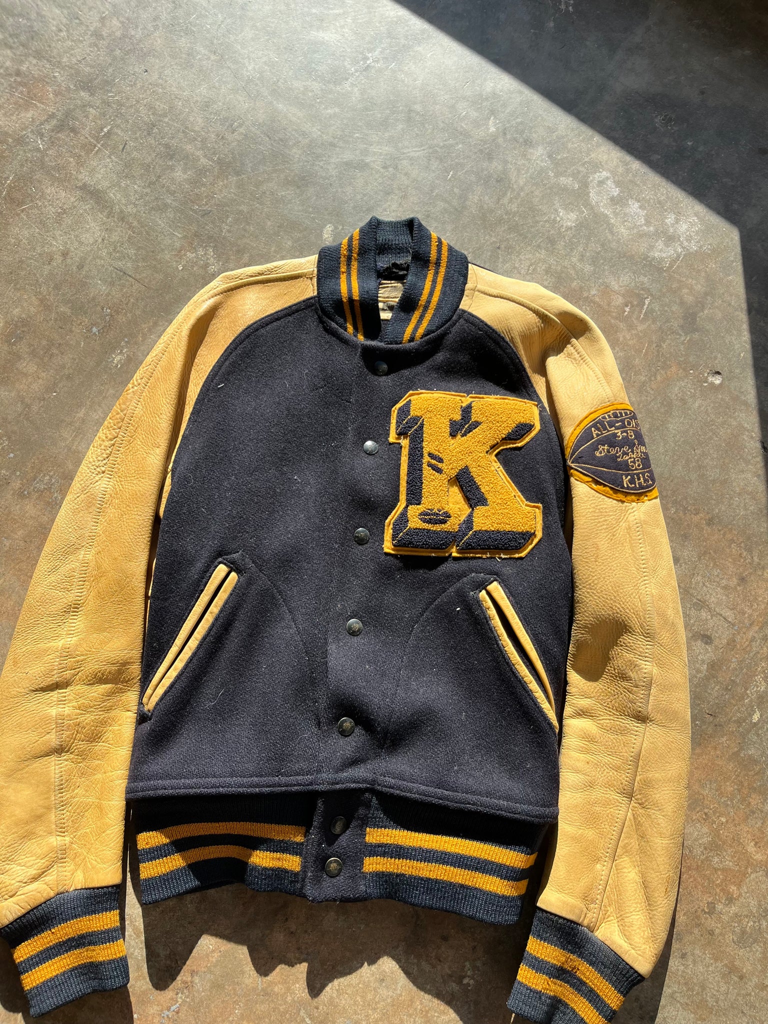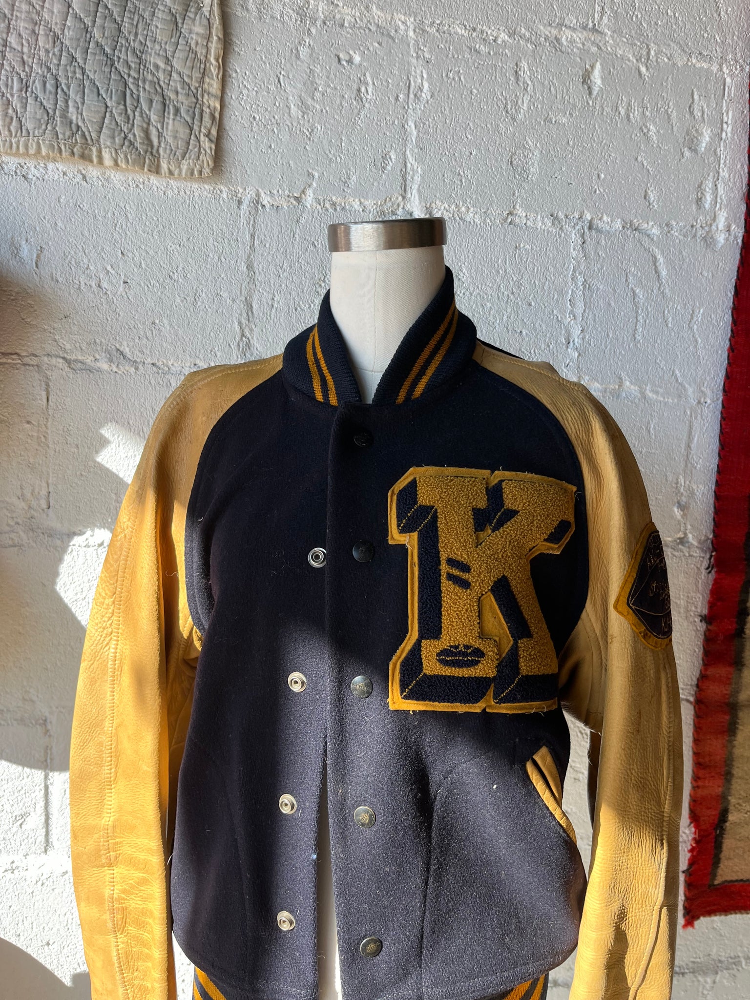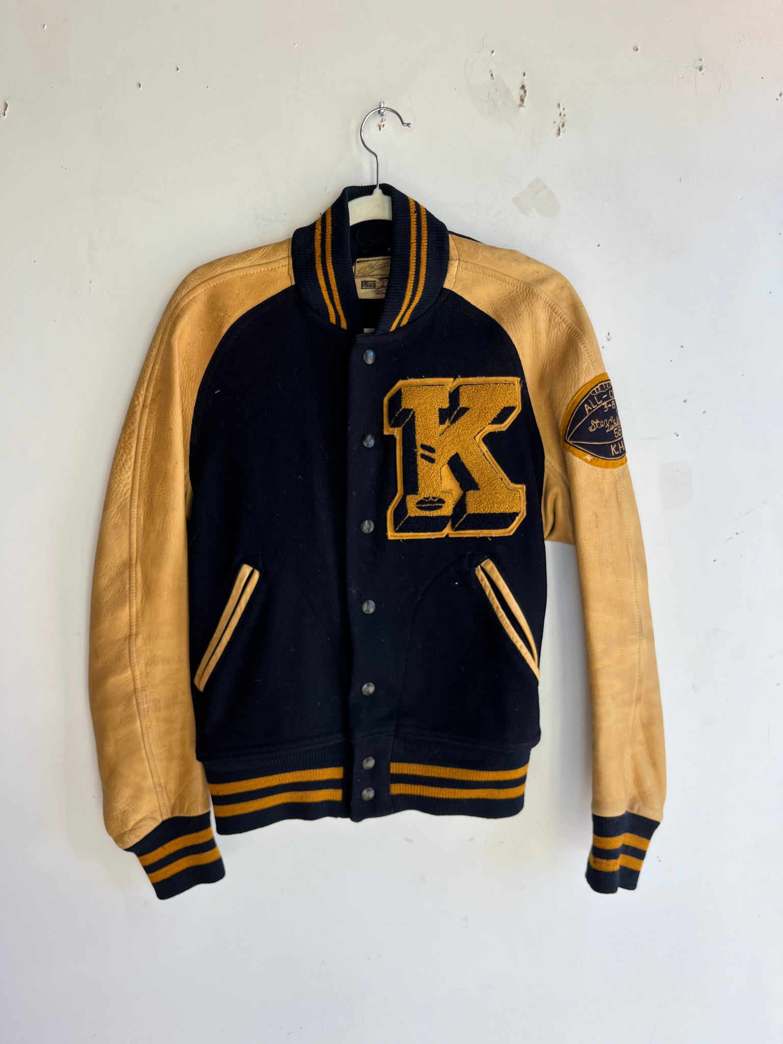 1950s Wool and Buckskin Letterman Jacket with Chain Stitched Patch