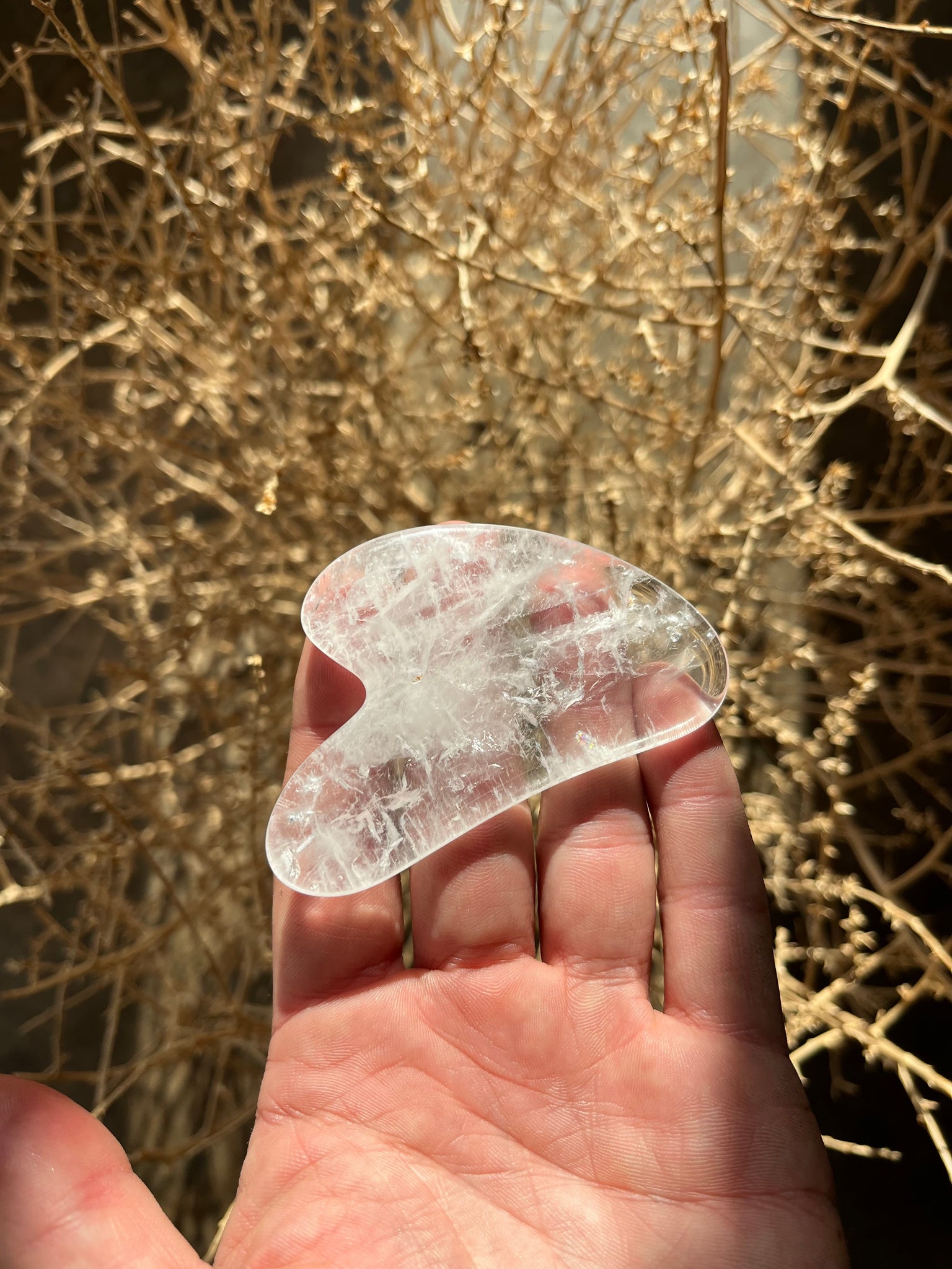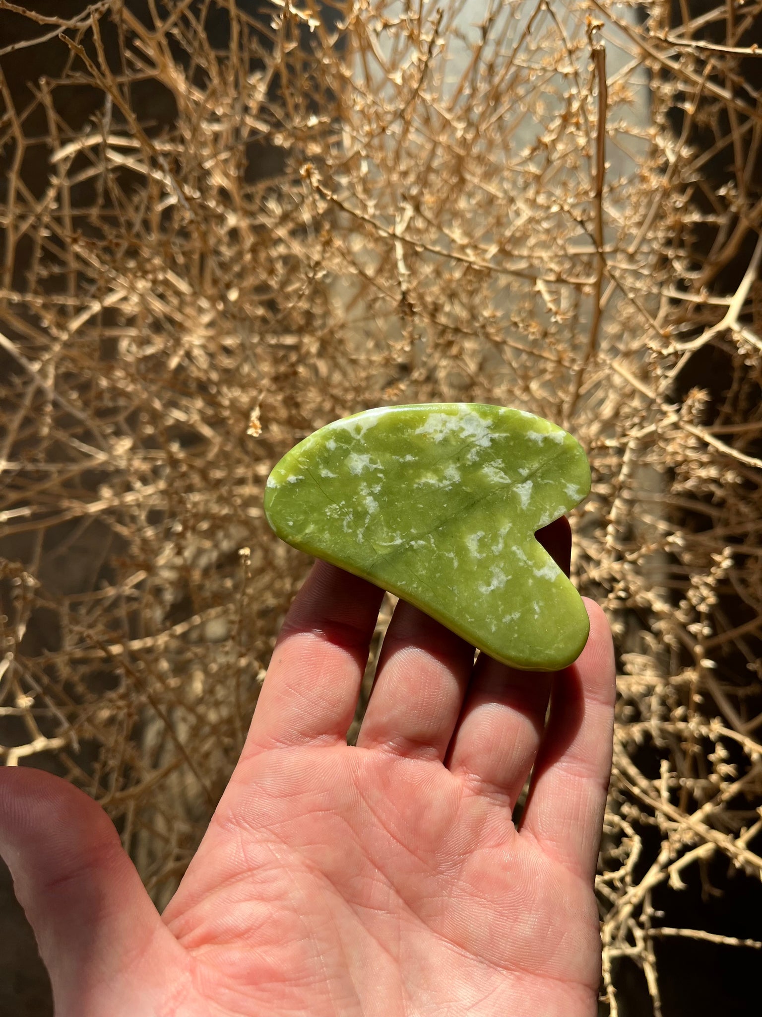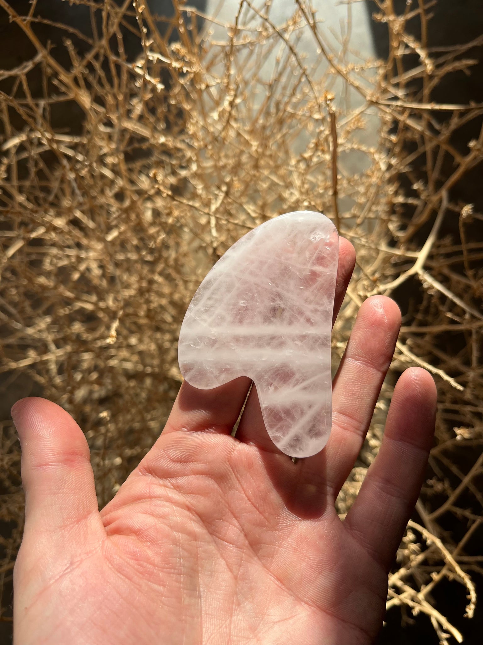 Apply a quarter size puddle of facial oil and then use the tool over my entire face, neck, and décolletage. An easy, feather-like stroke of a gentle facial gua sha technique is all it takes to flush the lymph into your body’s drainage system.