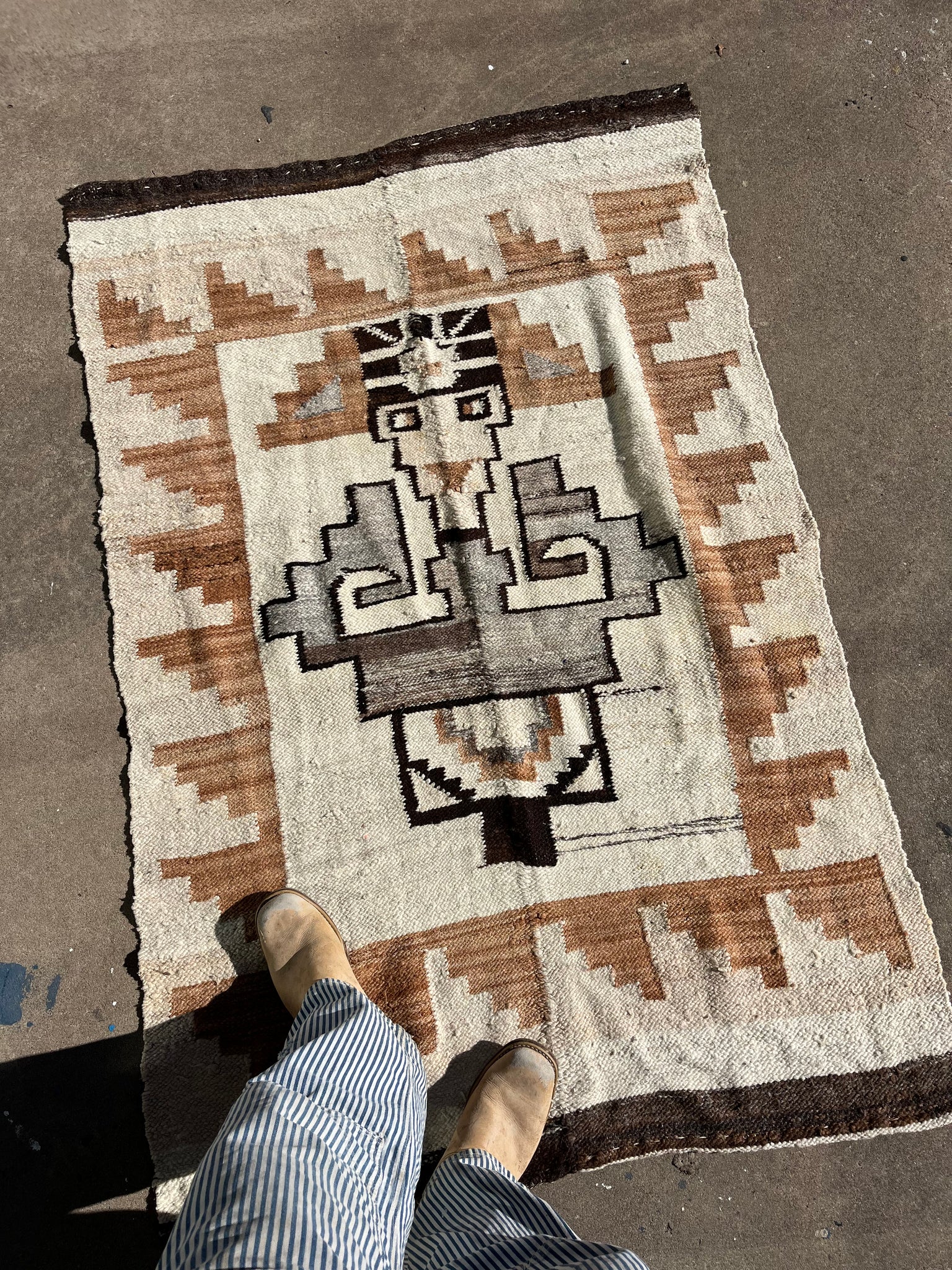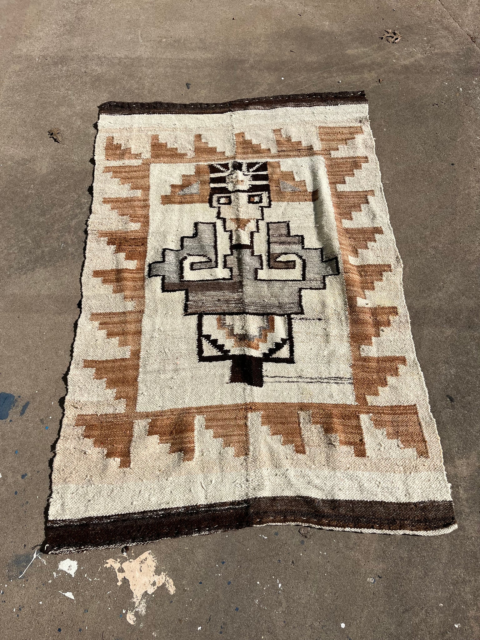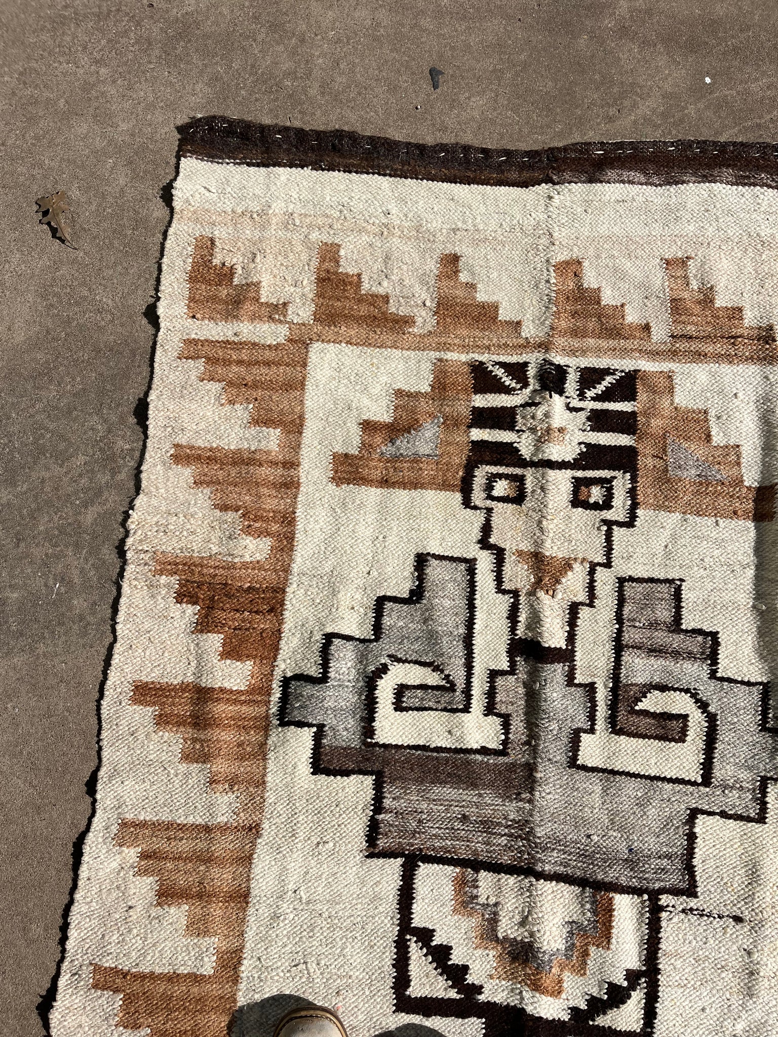 Large Vintage Hand Woven Peruvian Sheep Wool Rug or Wall Hanging