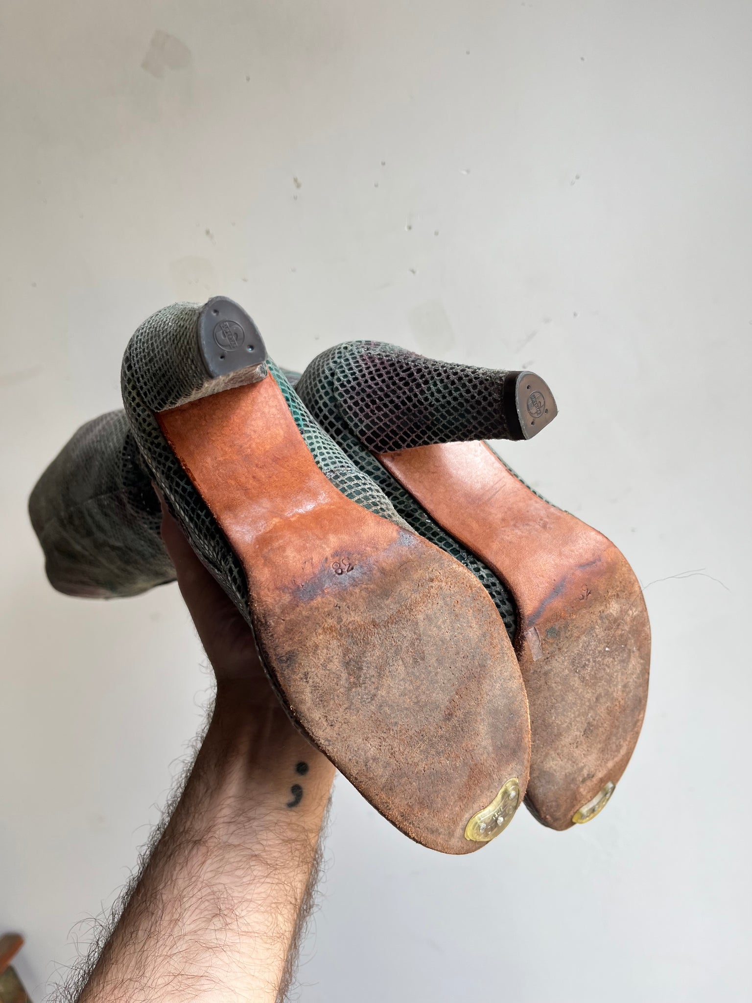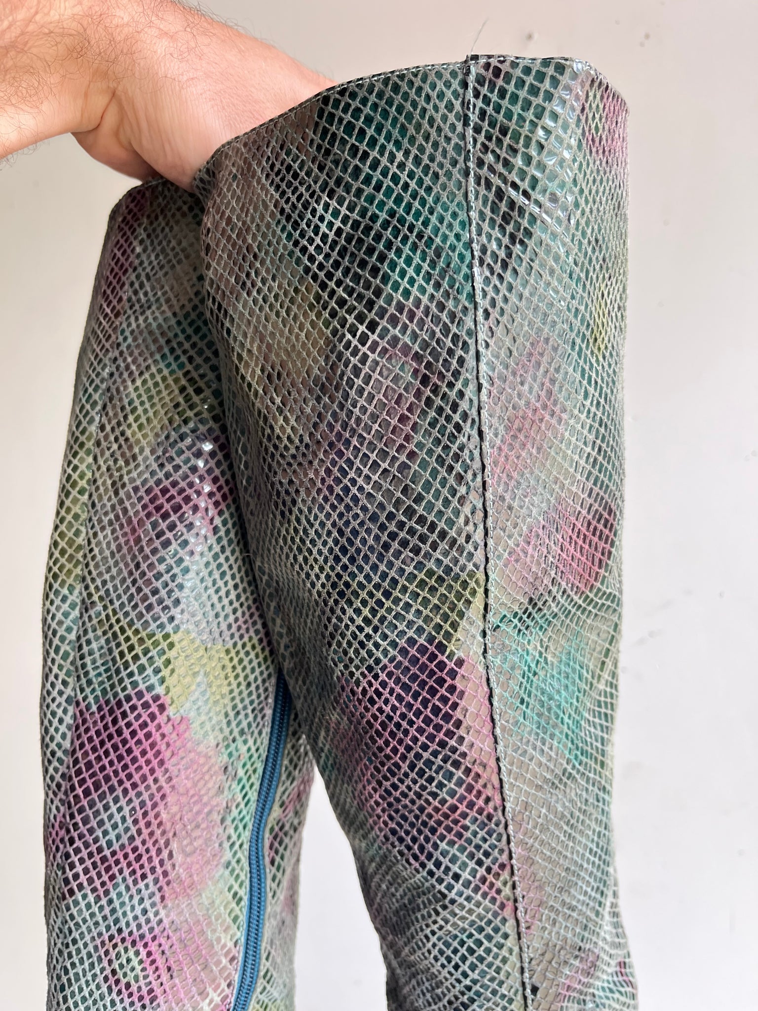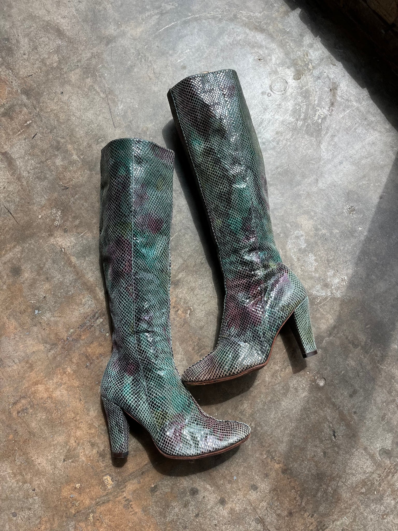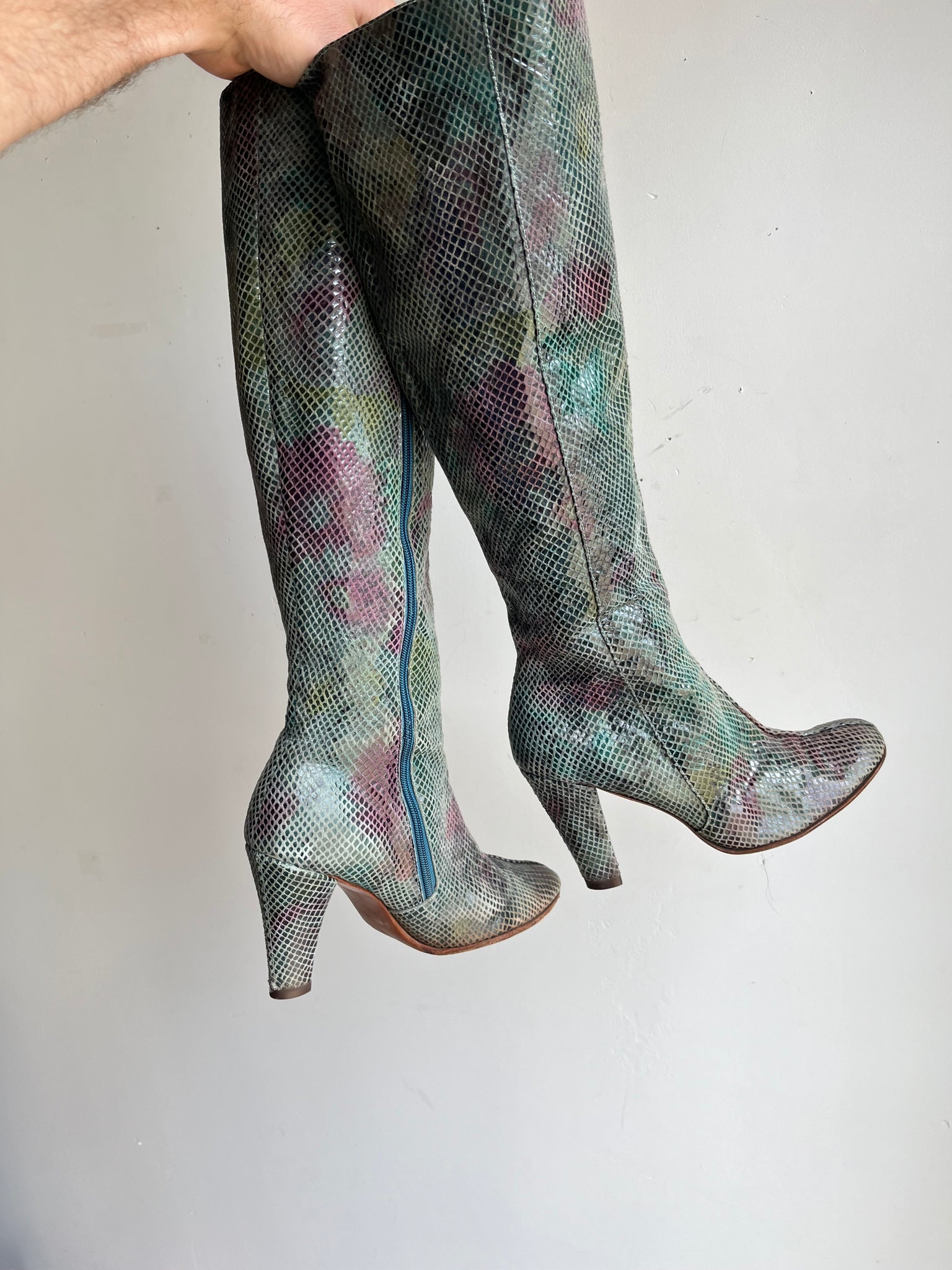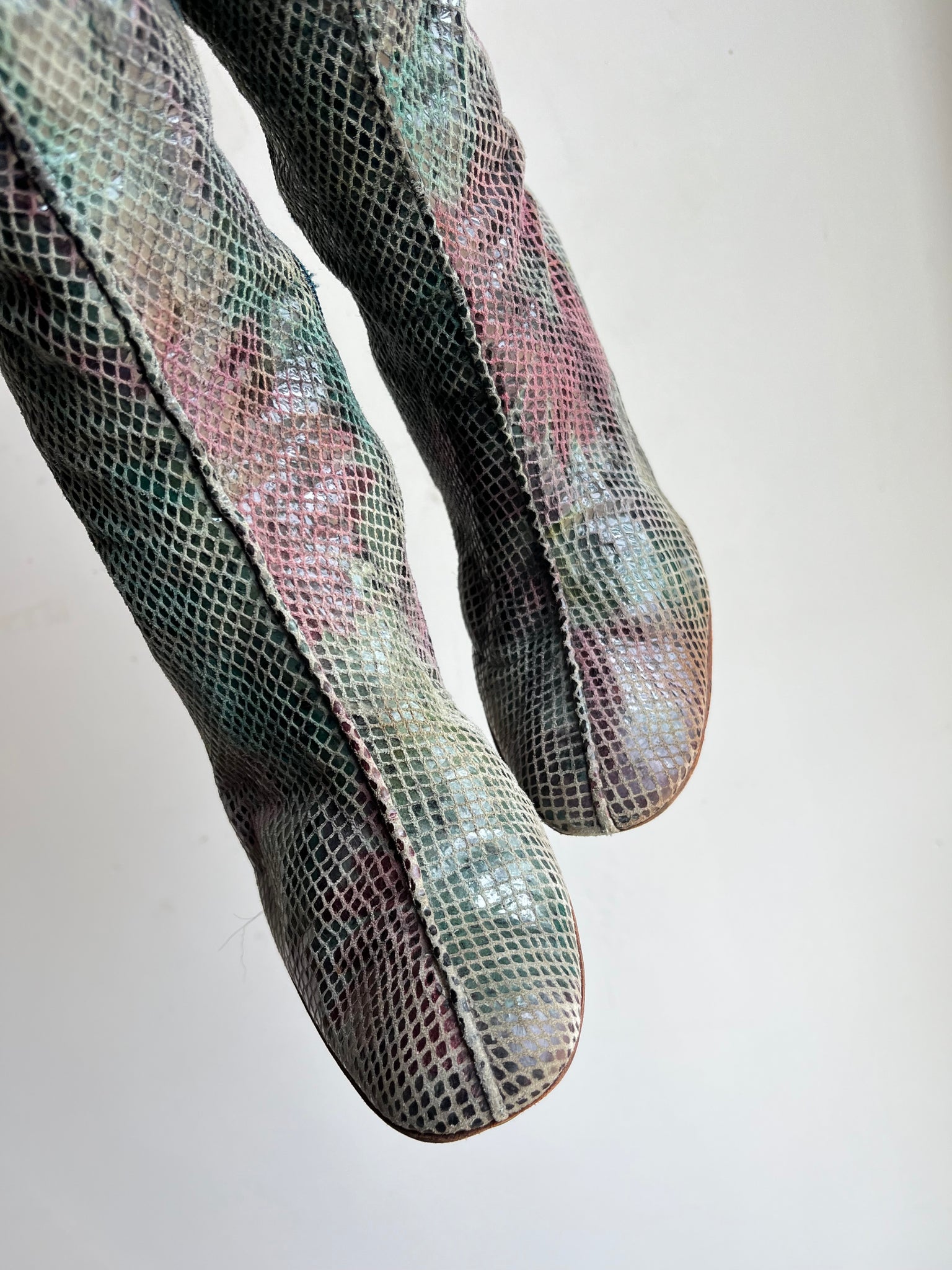 Rare 60s Shimmery Rainbow Snakeskin Knee High Boots