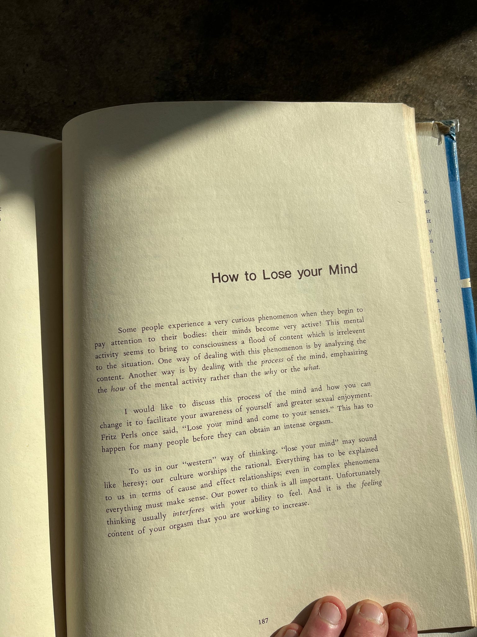 Total Orgasm is a book of sexuality that offers exercises and breathing techniques to give yourself the total orgasm-whether masturbation or working with a partner, this book covers spirituality as a tool.